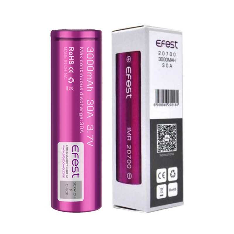 Accu Efest 20700 d'une autonomie de 3000 mah, idéal pour les cigarettes électroniques fonctionnant avec un calibre d'accu 20700.